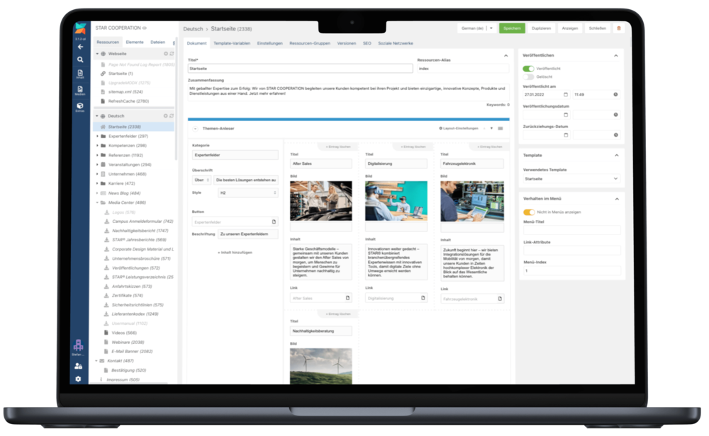 Professionelle Webseiten und Portale mit einem intuitiven, flexibel anpassbaren CMS, das eine einfache Pflege aller Inhalte ermöglicht – selbstverständlich stets im Rahmen des definierten Corporate Designs. Jede Website erfüllt höchste Anforderungen an Barrierefreiheit, DSGVO-Konformität und moderne Webstandards und ist konsequent auf Nutzerfreundlichkeit sowie SEO ausgerichtet.