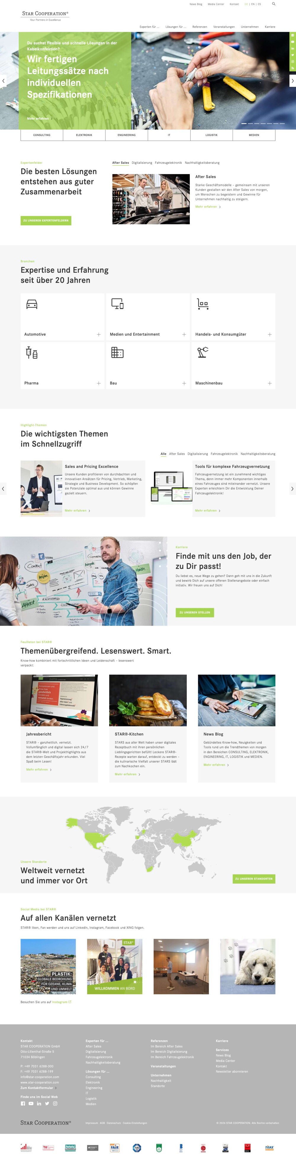 Im Auftrag von Stegmeyer Fischer Creative Studio wurde das Projekt „STAR Cooperation“ responsiv umgesetzt. Das zugrunde liegende modulare System ermöglicht eine flexible redaktionelle und gestalterische Pflege der Website.