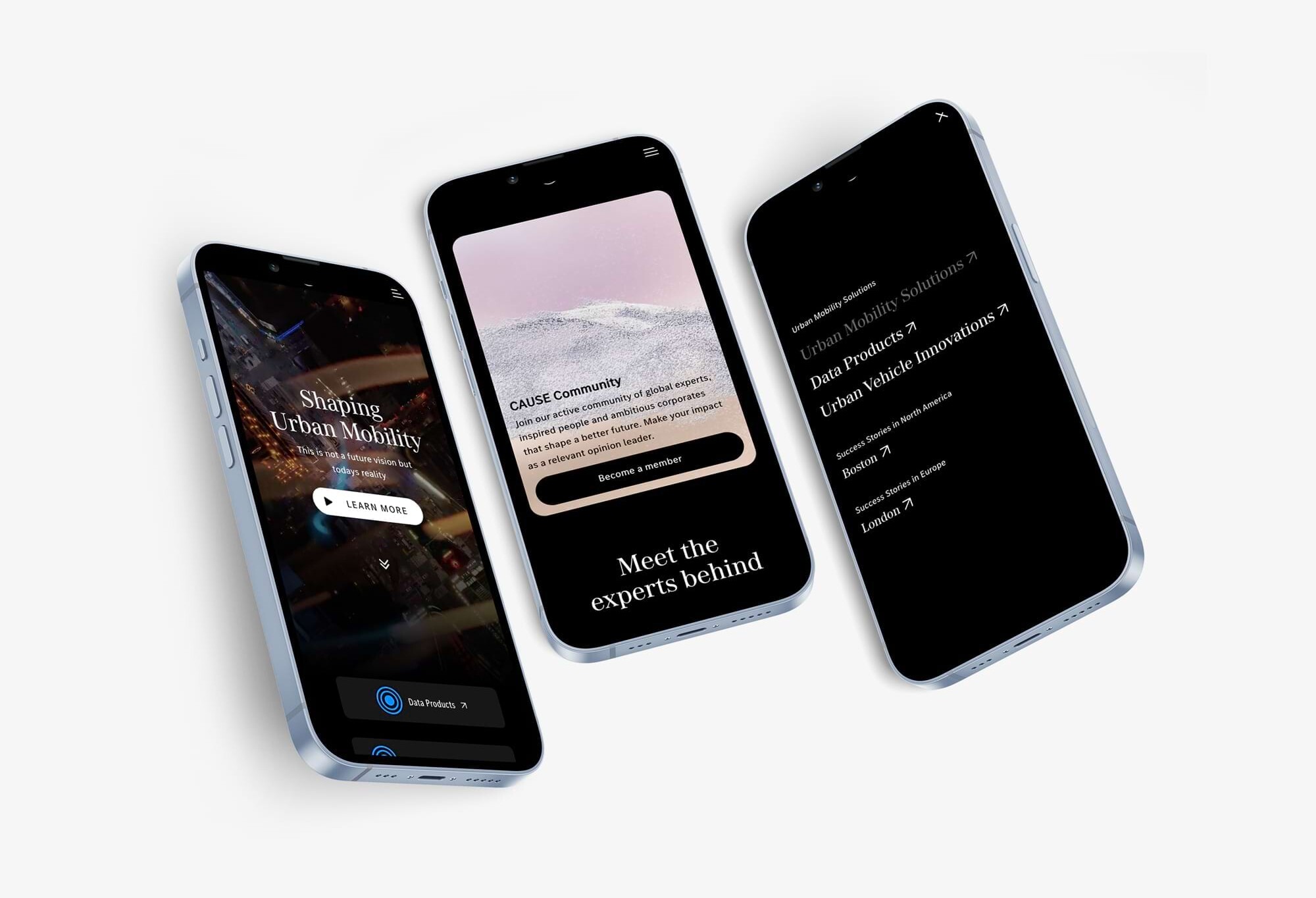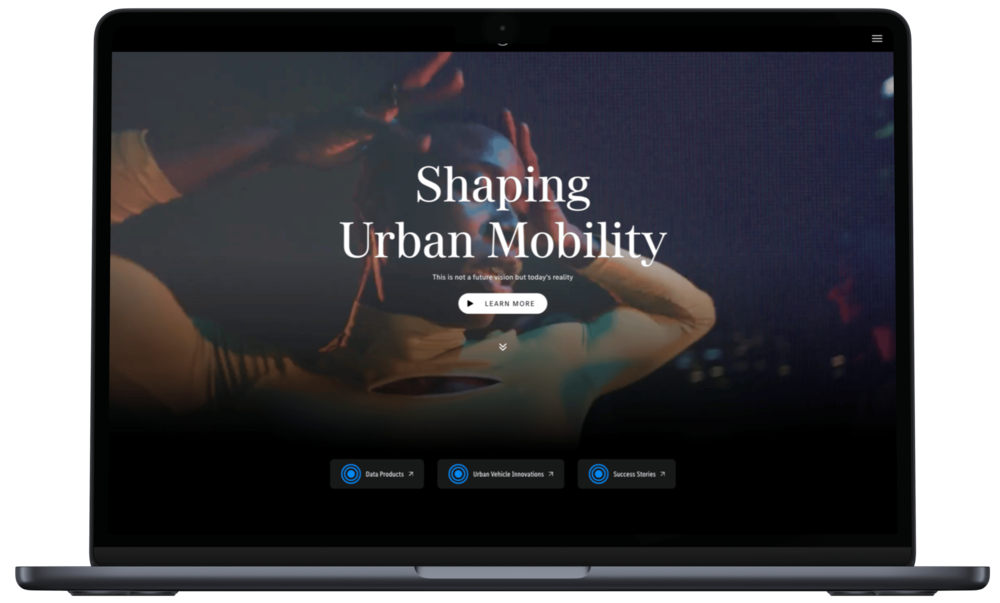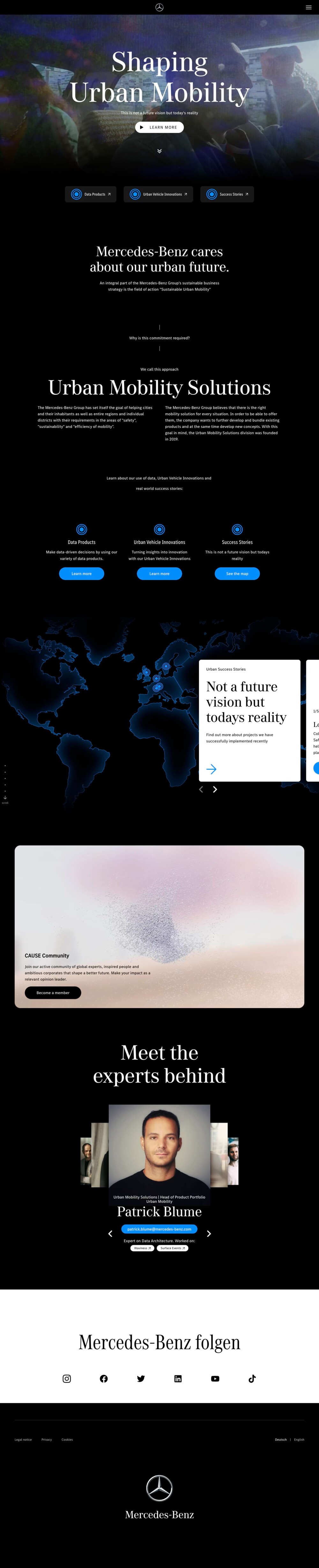 Im Fokus der Startseite steht eine Scrollanimation, welche das Konzept der Mercedes Benz Urban Mobility Solutions eindrucksvoll veranschaulicht.